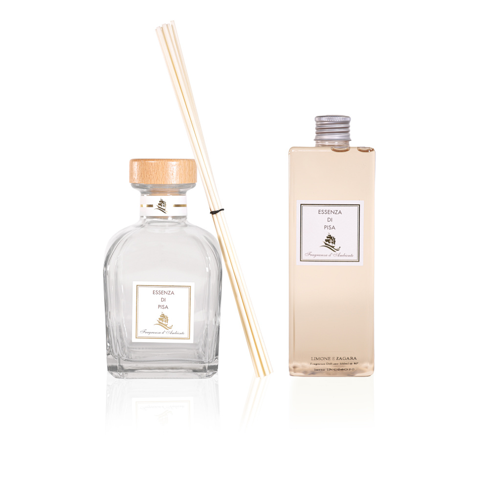 Diffuser Refill Kit – Package includes: 500ml refill – Bamboo diffusers – 500ml glass bottle per refill.
