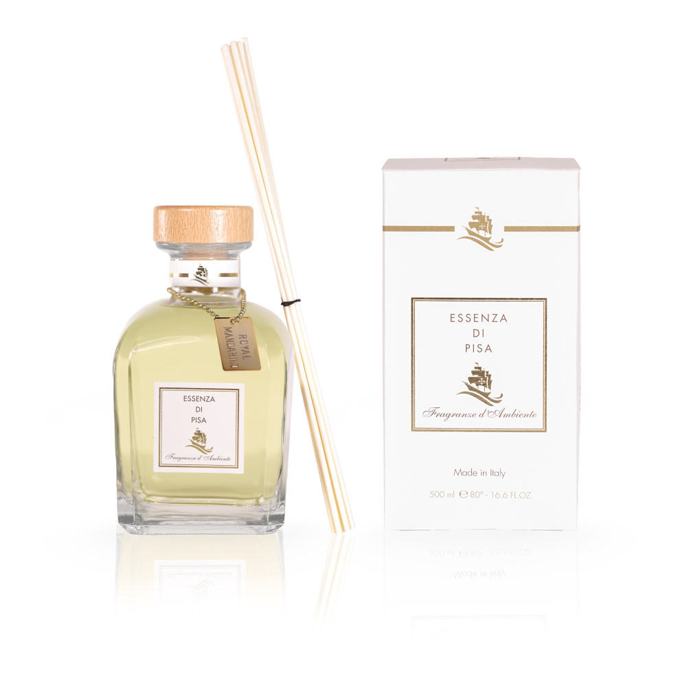 Complete packaged air freshener – The package includes: 500ml air freshener in a glass bottle – Bamboo diffusers – Cardboard box.